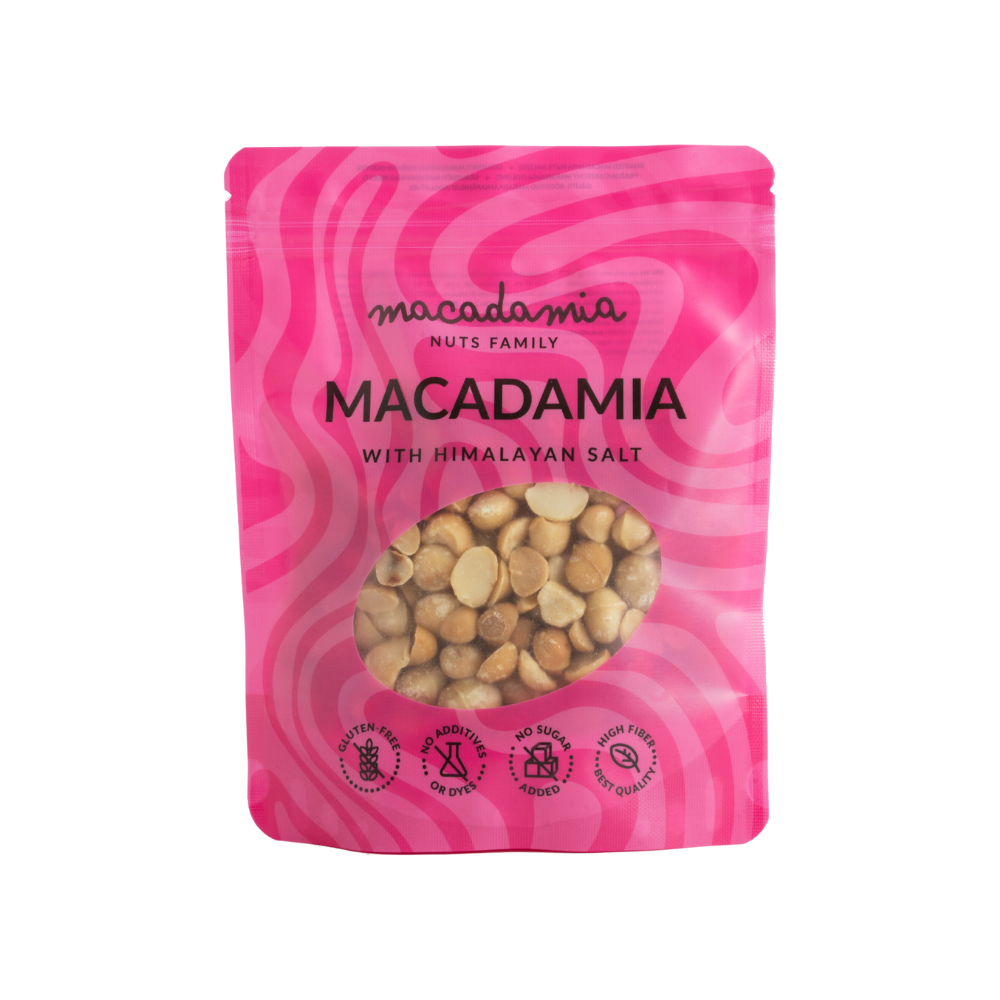 Sastāvs: 97,9% makadāmijas rieksti, 2,1% Himalaju sāls